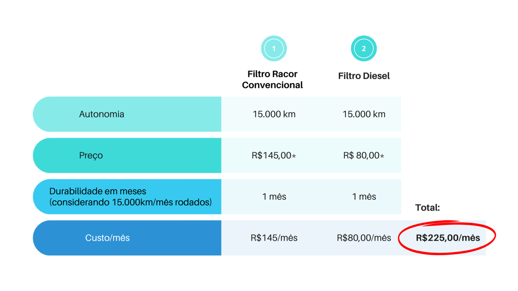 Ao analisar os dois cenários, percebe-se que o filtro de alto rendimento gera economia consistente: