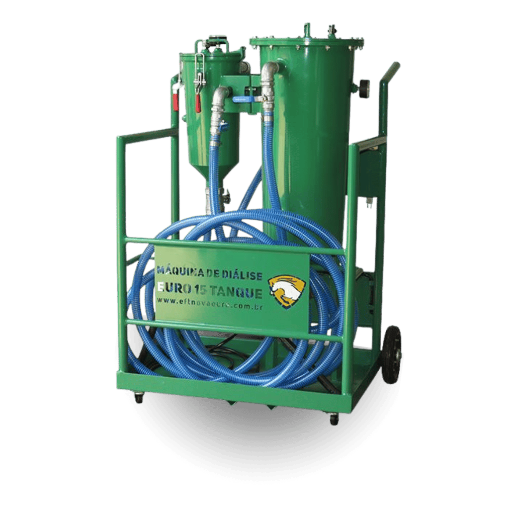 A diálise é um processo avançado de microfiltragem que remove tanto impurezas sólidas (partículas) quanto líquidas (água) presentes no óleo diesel ou hidráulico. O objetivo é purificar o fluido e restaurar suas propriedades originais, permitindo sua reutilização, por vezes, com qualidade equivalente à de um óleo novo.